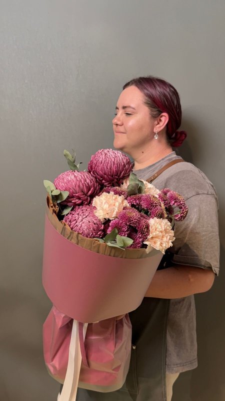 У салона удобный формат работы — можно заранее написать в мессенджер, выбрать букет и приехать к назначенному времени, когда композиция уже будет готова. Чаще всего я беру небольшие нежные букетики в качестве комплимента — они всегда получаются воздушными и аккуратными, а если нужно что-то срочное, знаю, что здесь быстро соберут именно то, что нужно.