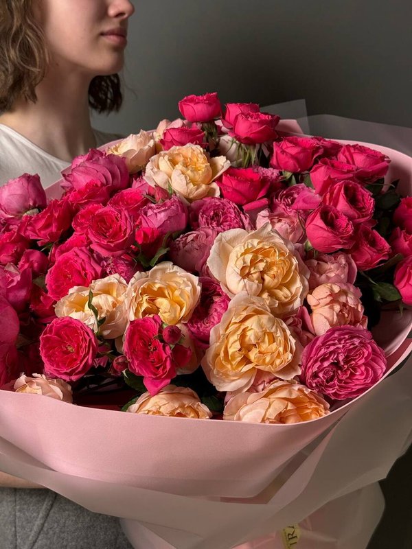 У сотрудников получился красивый букет с пионами и кустовыми розами. Я приобрел его для девушки в подарок и остался всем доволен.